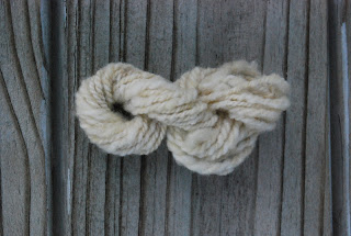 This is a bit of the Romeldale fleece I bought at MDSW. I have washed only the worst of the dirty parts so far because I want to see what it will take to get it clean and be sure I don't felt it. So far, so good and I love it flicked. It's a joy to spin and I bought 7 lbs, so I hope to have a sweaters worth of yarn when I am done.